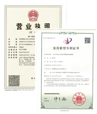 海南鵬基人防工程有限公司于二OO八年經(jīng)國(guó)家人民防空辦公室批準(zhǔn),指定專(zhuān)業(yè)生產(chǎn)、安裝人防工程防護(hù)設(shè)備的定點(diǎn)企業(yè)。