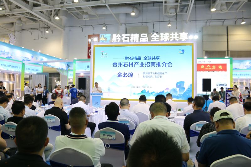 第二十三屆中國廈門國際石材展于2023年6月5-8日在廈門國際會展中心隆重舉行。貴州28戶石材企業組團參展,并搭建了以“黔石精品,全球共享”為主題的貴州石材精品展館,總面積575平方米,現場石材企業通過集中展示我省特有的木紋石、米黃、海貝花等優質石材產品來擴大“貴州石材”產品影響力,獲取全球市場訂單。